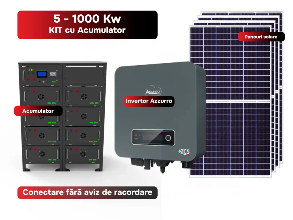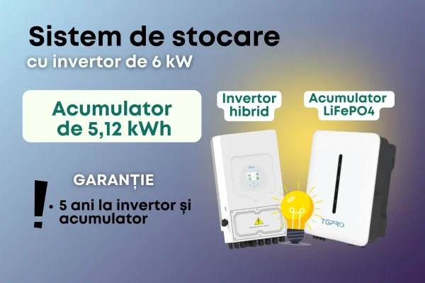 Kit fotovoltaic de 6 kWh: Panouri solare | Invertor Hybrid 6 Kw | Acumulator LiFePo4 5,12 Kw